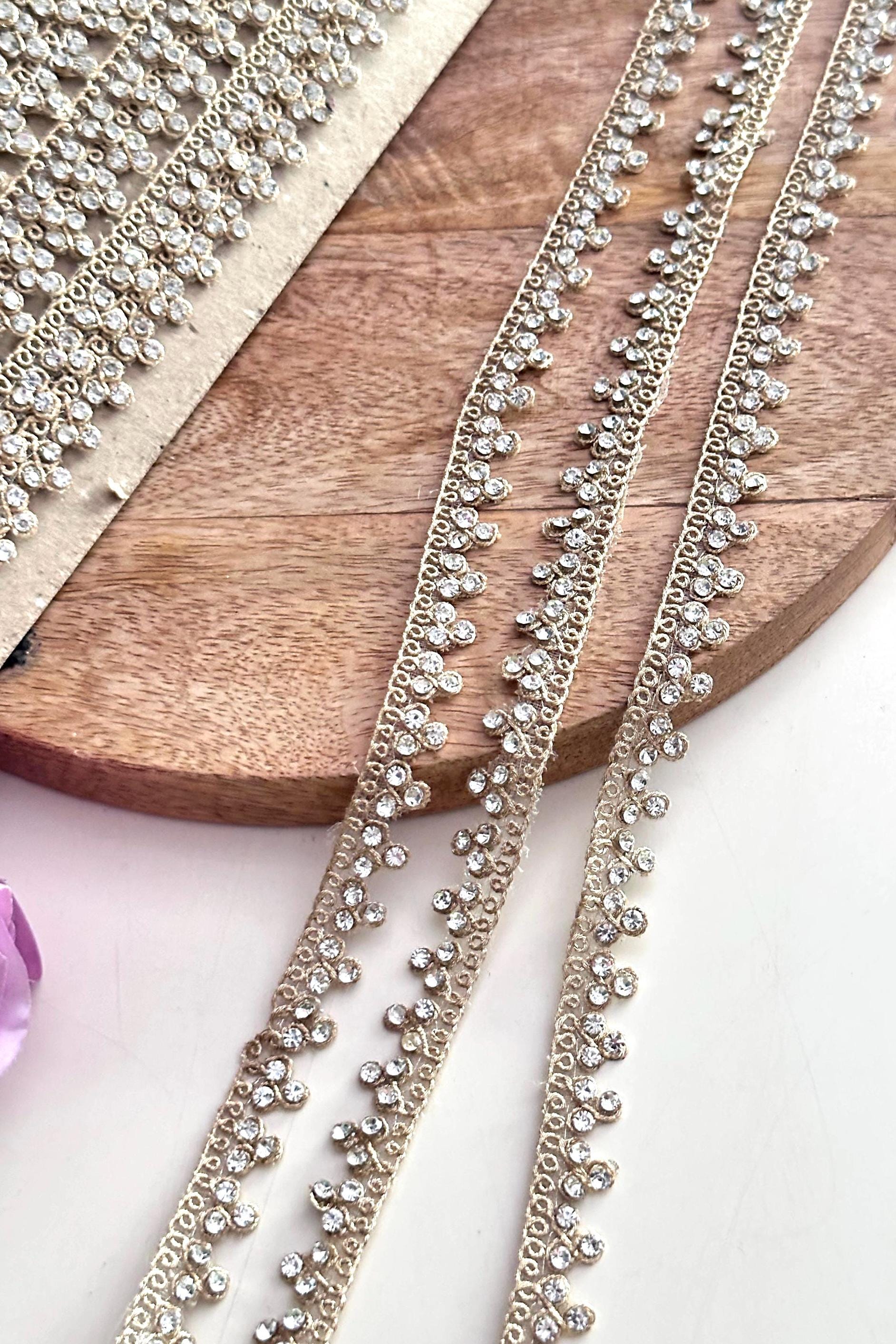 9 Meter Rhinestone Lace Trim for Craftin Gold