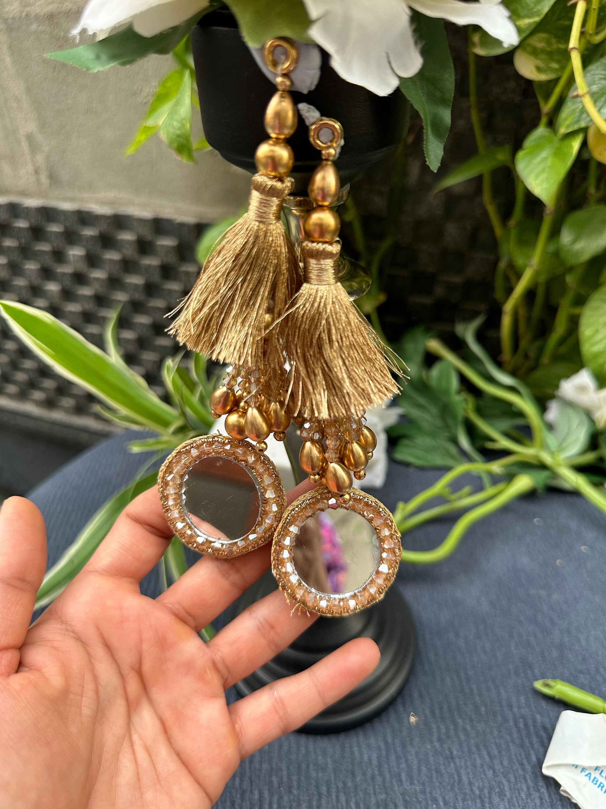 Gold Mirror Hanging Tassel – 1 Pairs of Gold Fringe Latkan 5.5inch for Bridal Wear ✨