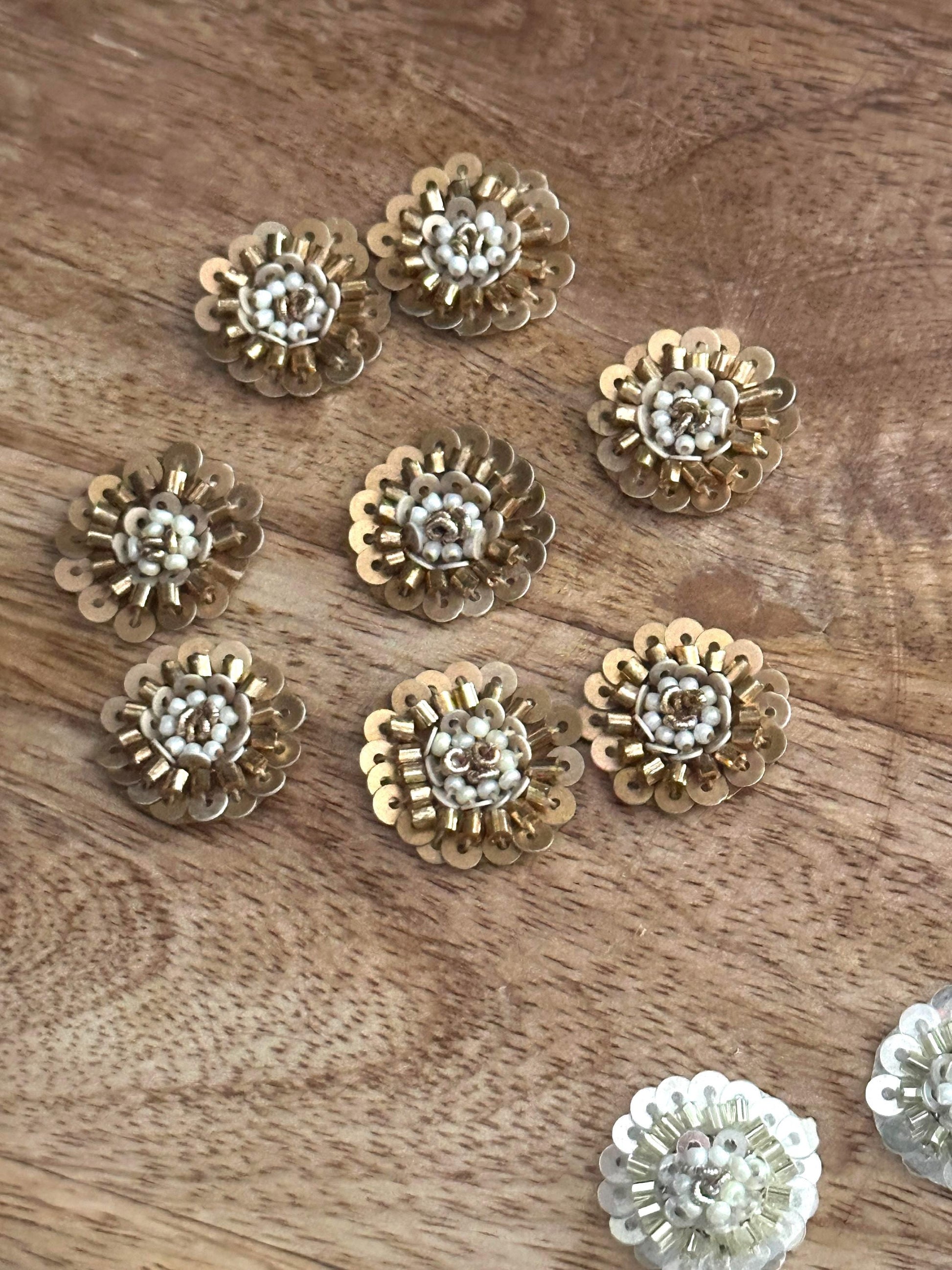Add a touch of sparkle and elegance to your creations with these handmade sequin flower embellishments. Each piece is carefully crafted with layered sequins and beads, creating a beautiful floral design that catches the light perfectly.
