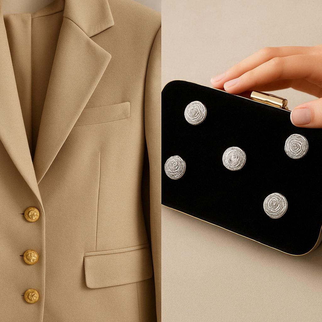 • Premium Hand Embroidery – Each button is intricately stitched with fine metallic threads, reflecting traditional craftsmanship